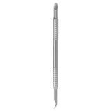 - The working part “slanted pusher” is used to lift and push back coarse and heavily adhered cuticles, cleanse the nail’s free edge and remove gel polish drips